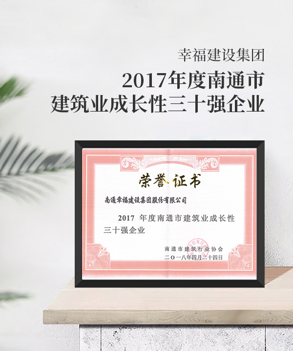 2017年度南通市建筑業(yè)成長(zhǎng)性三十強(qiáng)企業(yè)